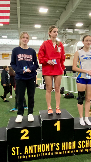 Grace Slattery in the 300m, Bridget Theison in the Triple Jump Lizzy Ryan in the 1000m and Russel DeVito in the 1600m TEAM SCORE and PLACE:
