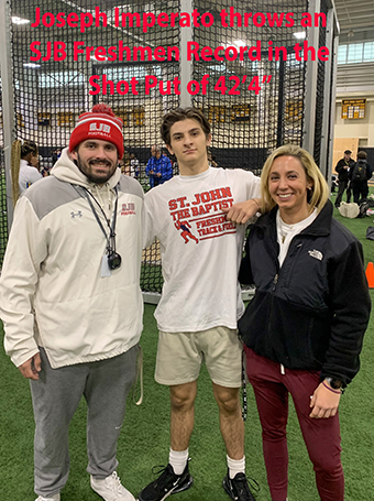 Chris DiLegge Wins Triple Jump - Joe Imperato Re-Sets His SJB Frosh School Record in Shot Put Grace Slattery comes in 2nd Place in the F/S Triple Jump (her first time tripling ever) Lizzy Ryan comes in 2nd Place in the F/S 600m Nigel Fleetwood makes the Fr 300 Final then comes in 5th Place Nigel Fleetwood, Russell DeVito, Chris DiLegge, Parker Jones earn VARSITY LETTERS Varsity Girls 4x200 runs a 3 second PR and comes in 3rd place Varsity Boys 4x200's come in 2nd and 5th Place Satruday 2/4/23 and Sunday 2/5/20023: Weight Throw at Ocean Breeze Inv: