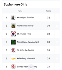 Girls 4:12 and Boys 3:34Wednesday May 10, 2023: Girls League Frosh/Soph Champs